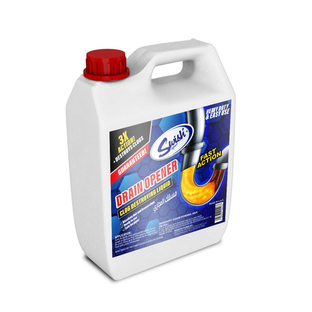 Swish Drain Opener (5L) is a high-performance drain cleaning solution designed to clear stubborn clogs in pipes, sinks, tubs, and showers. This powerful formula dissolves grease, soap scum, hair, and other blockages quickly, restoring proper drainage. Ideal for larger-scale residential and commercial use, the 5L size offers a cost-effective solution for frequent maintenance. Safe and efficient, it ensures drains remain clear and free-flowing. Always follow the instructions carefully for best results.